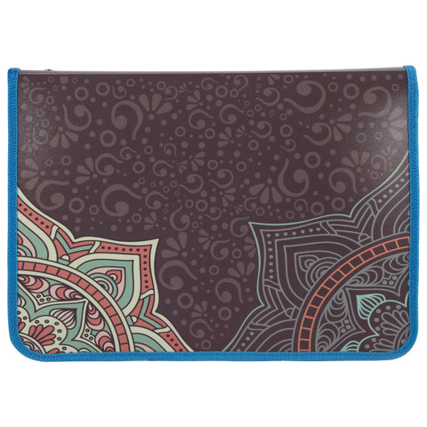 Папка для труда BRAUBERG, А4, пластик, цветная печать, молния вокруг, для девочек, "Орнамент", 227116