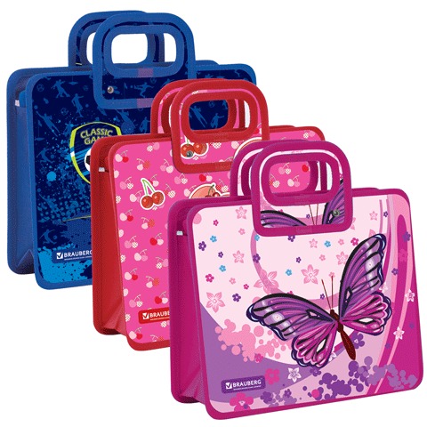 Сумка пластиковая BRAUBERG, ассорти "Девочка, Футбол, Бабочка", 1отделение, на молнии, 28х23х10 см