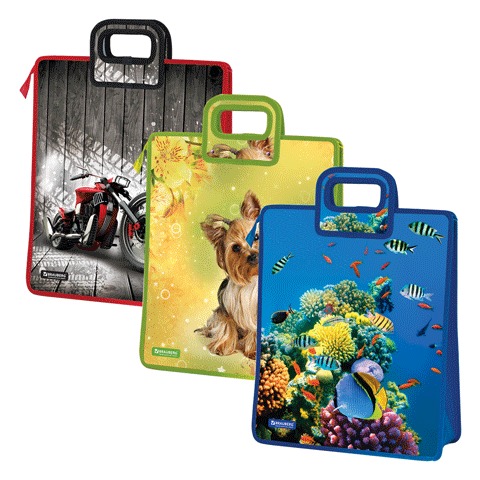 Сумка пластиковая BRAUBERG, ассорти "Щенок, Супербайк, Море", 1 отделение, на молнии, 43х35х13 см