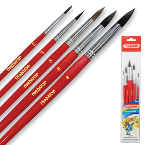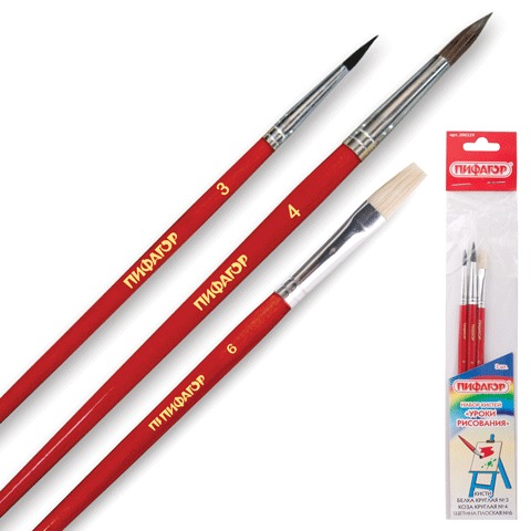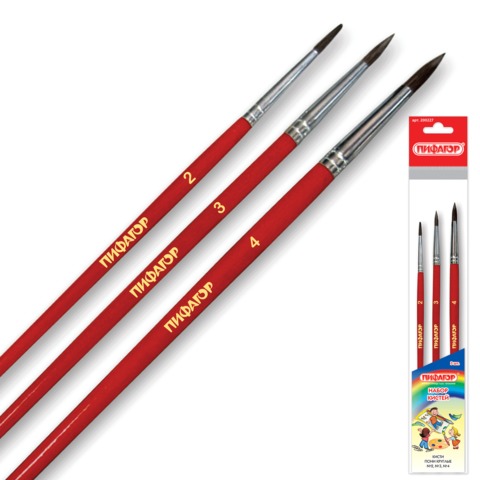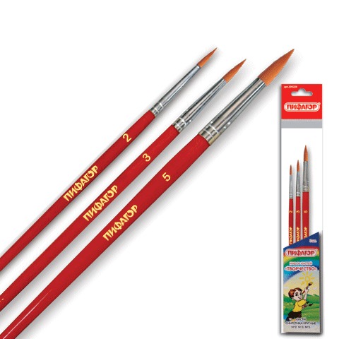 Кисти ПИФАГОР, набор 3 шт. (синтетическая круглая № 2, 3, 5), 200226