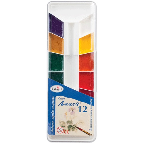 Краски акварельные ГАММА "Классическая", 12 цветов, медовая, пластиковый корпус, европодвес, 1009194