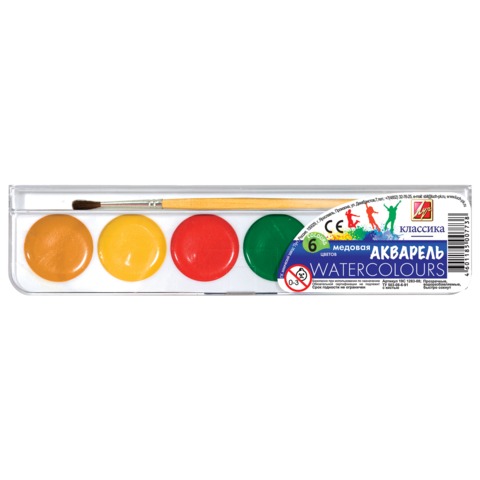 Краски акварельные ЛУЧ "Классика", 6 цветов, медовые, с кистью, пластиковая коробка, 19С1283-08