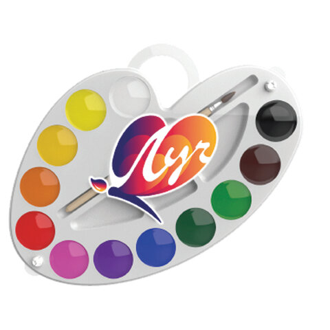 Краски акварельные ЛУЧ "Палитра", 12 цветов, медовые, с кистью, пластиковая коробка, 29С 1761-08