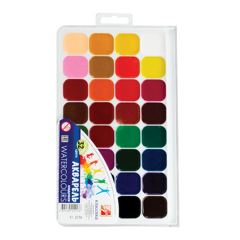 Краски акварельные ЛУЧ "Классика", 32 цвета, медовые, без кисти, пластиковая коробка, 26С1579-08