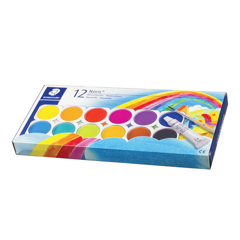Краски акварельные STAEDTLER (Германия), 12 цветов + белила, с кистью, пластиковая коробка, 888 NC12