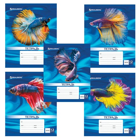 Тетрадь 12 листов, клетка, обложка мелованный картон, блок офсет белый, "Magic Fish", BRAUBERG, 104768