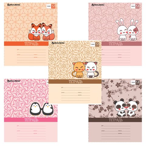 Тетрадь 12 листов, линия, обложка мелованный картон, блок офсет белый, "Парочка", BRAUBERG, 104778
