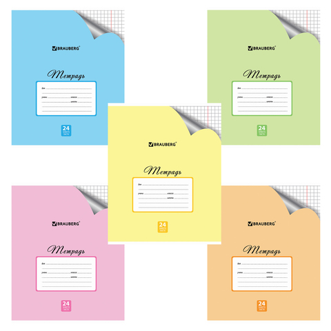Тетрадь 24 л. BRAUBERG "ЭКО", клетка, обложка офсет, внутренний блок офсет, "Пастельная с уголком", 402809