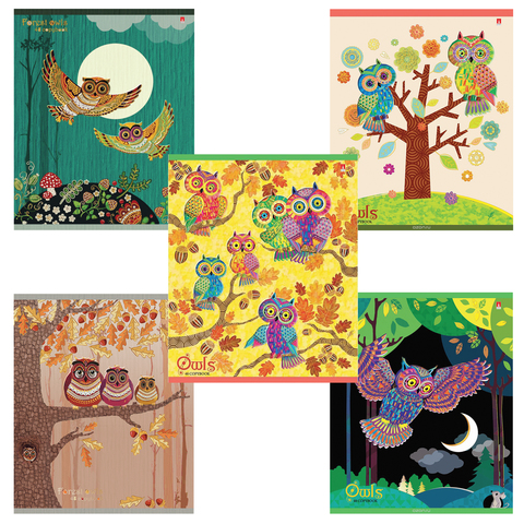 Тетрадь 48 л. АЛЬТ, клетка, конгрев, фольга, выборочный лак, "Сказочные совы. Яркие", 7-48-013