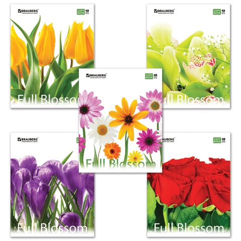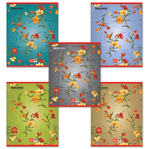 Тетрадь 48 л. BRAUBERG "ЭКО", клетка, обложка мелованный картон, внутренний блок офсет, "Цветы", 401283