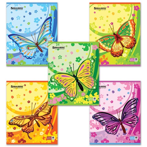 Тетрадь 48 л. BRAUBERG, клетка, блестки, внутренний блок офсет белый, "Бабочки", 401837
