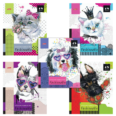 Тетрадь 48 л. HATBER, клетка, блестки, "Модные мордочки", 48Т5блВ1, T280737