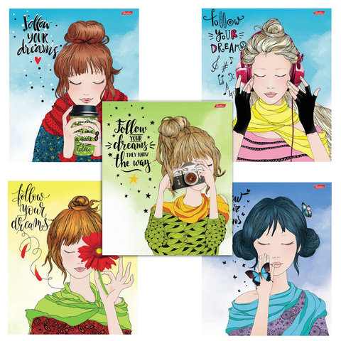 Тетрадь 48 л. HATBER, клетка, обложка мелованный картон, "Follow your dreams", 48Т5В1, T272336