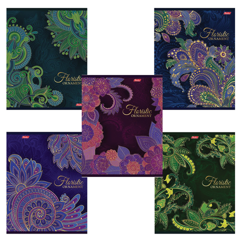 Тетрадь 48 л., HATBER, клетка, 3D-фольга и матовая ламинация, "Floristic Ornament", 48Т5лофВ1, T243534