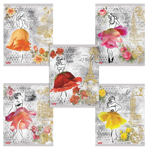 Тетрадь 48л. HATBER, клетка, блестки, "Силуэты", 48Т5блВ1, T268414