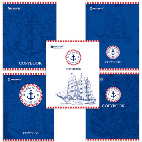 Тетрадь 48 л. BRAUBERG "ЭКО", линия, обложка мелованный картон, внутренний блок офсет, "Королевский флот", 401896