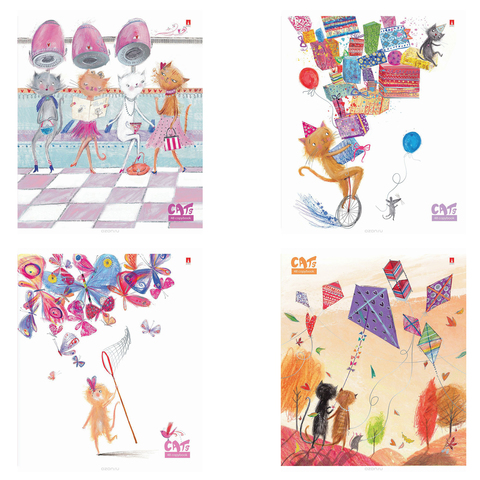 Тетрадь 48 л. АЛЬТ, клетка, фольга, гибридный лак, "Праздник. Кошки", 7-48-114
