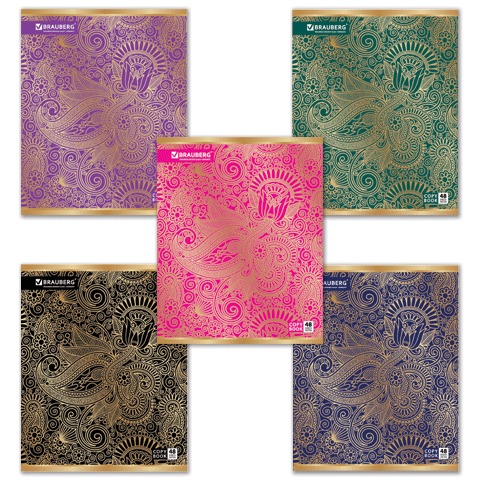 Тетрадь 48 л. BRAUBERG, клетка, тиснение фольгой, внутренний блок офсет белый, "Узор", 401840