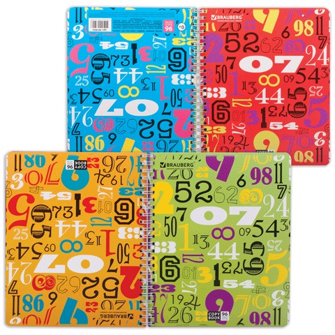 Тетрадь 96 л. BRAUBERG, гребень, клетка, 4 обложки, внутренний блок офсет белый, "Цифры", 401852