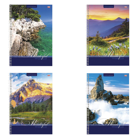 Тетрадь 96 л., А4, HATBER VK, гребень, клетка, обложка мелованный картон, "Пейзажи", 96Т4C3гр, T240489