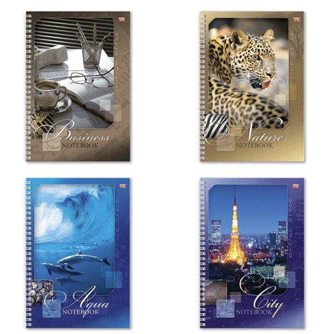 Тетрадь 80 л., А4, HATBER VK, гребень, клетка, обложка мелованный картон, "Ассорти", 80Т4C1сп, T011003