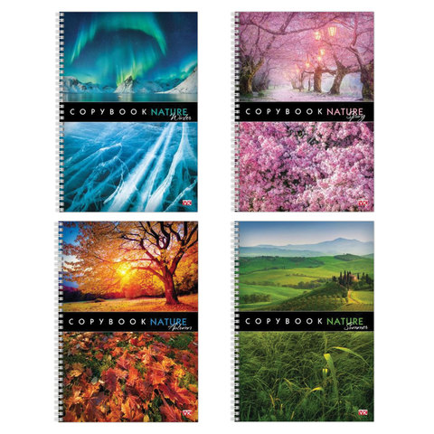 Тетрадь 96 л., А4, HATBER VK, гребень, клетка, обложка мелованный картон, "Пейзажи", 96Т4C3гр, T240489