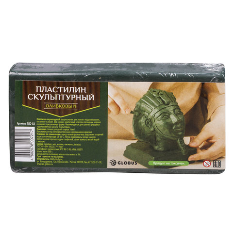 Пластилин скульптурный GLOBUS, оливковый, 0,5 кг, твердый, ПЛС-03