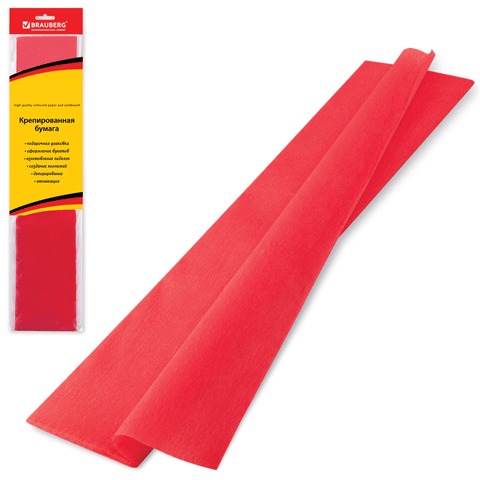 Цветная бумага крепированная BRAUBERG, стандарт, растяжение до 65%, 25 г/м2, европодвес, красная, 50х200 см, 124730